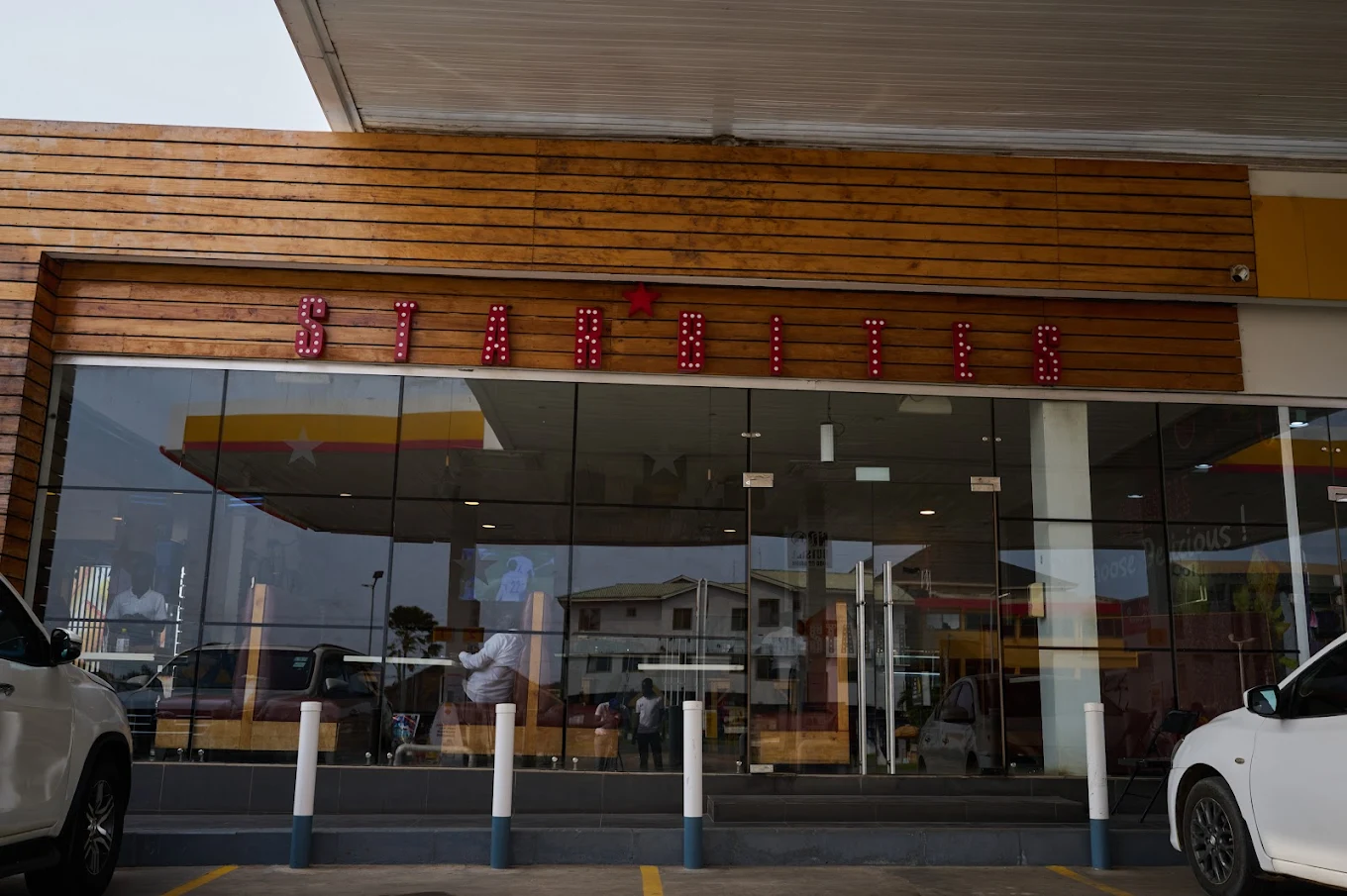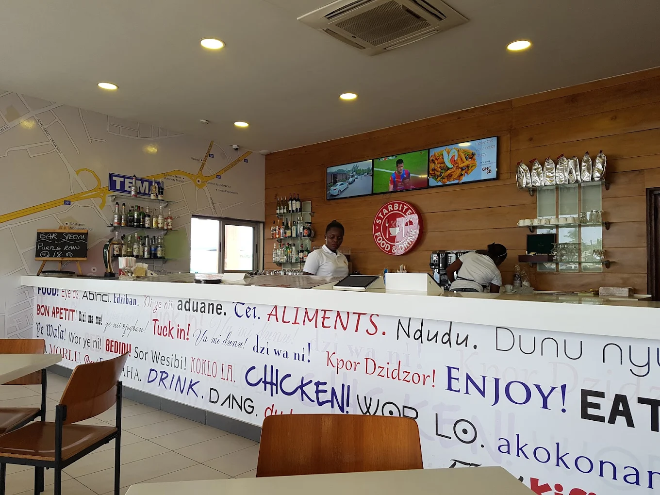 Starbites in Tema is located at the Shell Fuel Station on Mitchell Road in Community 8. It is known for its diverse menu, which fuses Ghanaian cuisine with international flavors, and its casual dining atmosphere.